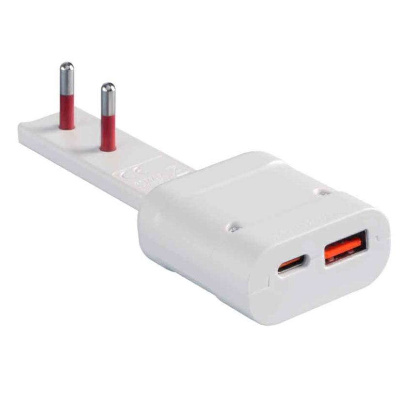 Spina Adattatore FLAT con USB BIANCA